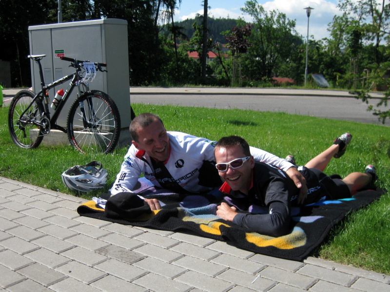 Samotný závod pak byl rutinním zážitkem, až na nepříjemné defekty, které ze hry vyřadily Marka a Liborka a skvostný výkon Zajdy ( 25./3. ), kterému dopolední erotika evidentně přišla k duhu a mohl tak letos premiérově vystoupat na bednu závodu KPŽ. Stálý absolvent dekorování vítězů Petr G. ( 34./2. ) nezklamal ani tentokrát, když v kategorii nad 40 let podleh pouze démonickému Václavu Smazalovi. Na bedně je doplnil další nestárnoucí sympaťák Tomáš Čada. Kapitán Jirka dorazil do cíle jako 49. ( 5. ), těsně před svým tradičním rivalem Jirkou Blažkem. Jo a Humr byl 10.